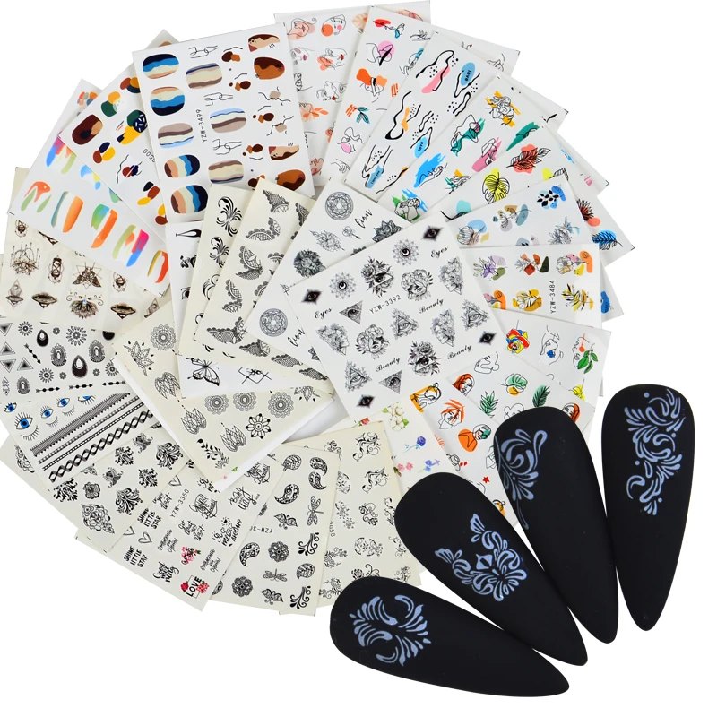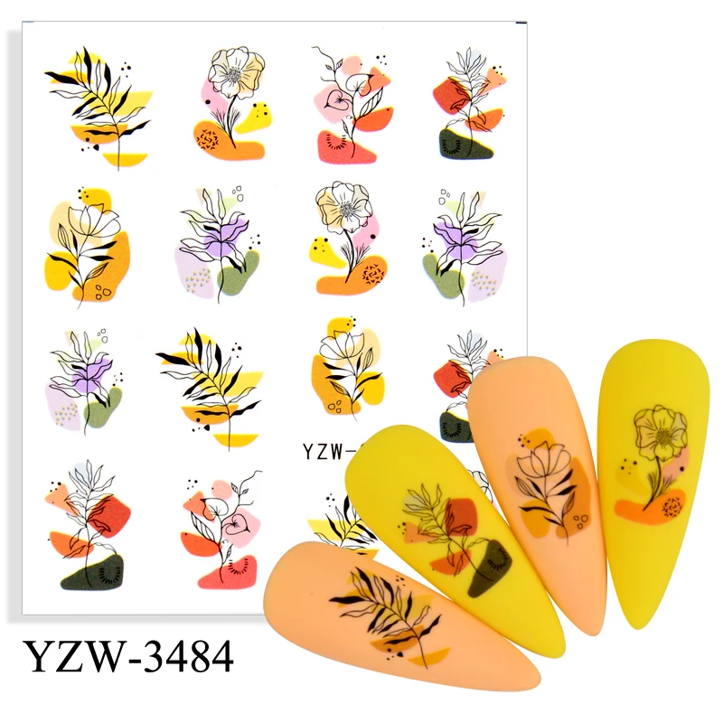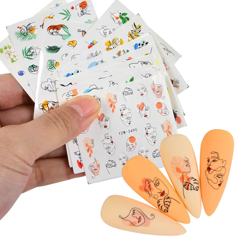 Абстрактные женские наклейки для ногтей на лицо, наклейки с цветами и листьями, весеннее украшение, Водная передача, маникюр, слайдеры, День Святого Валентина, искусство для ногтей