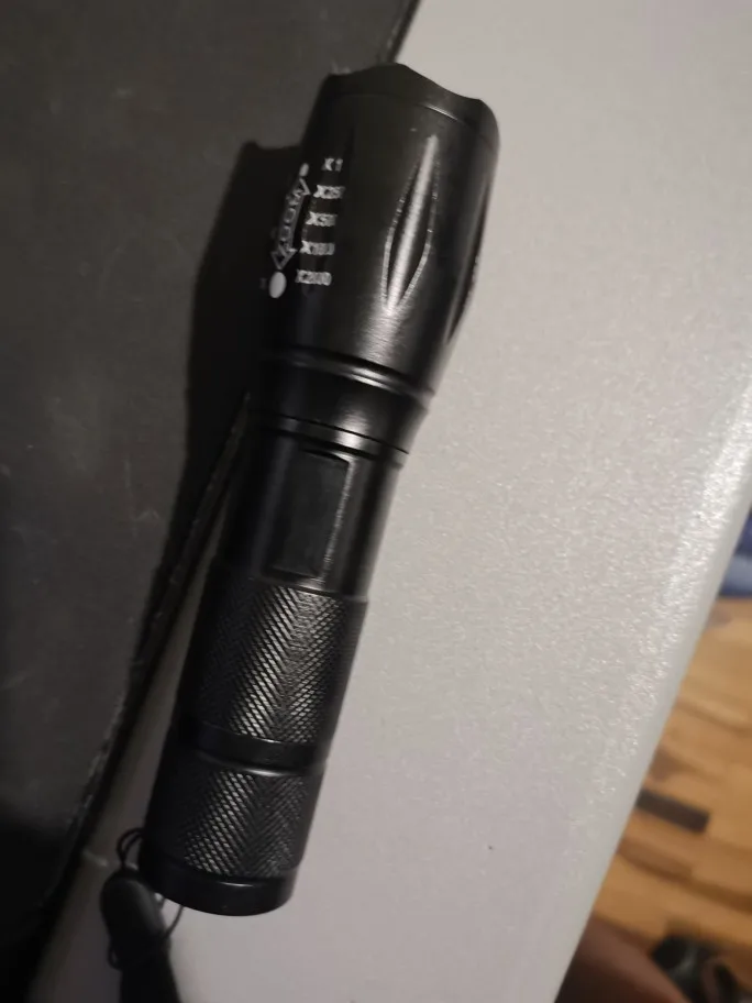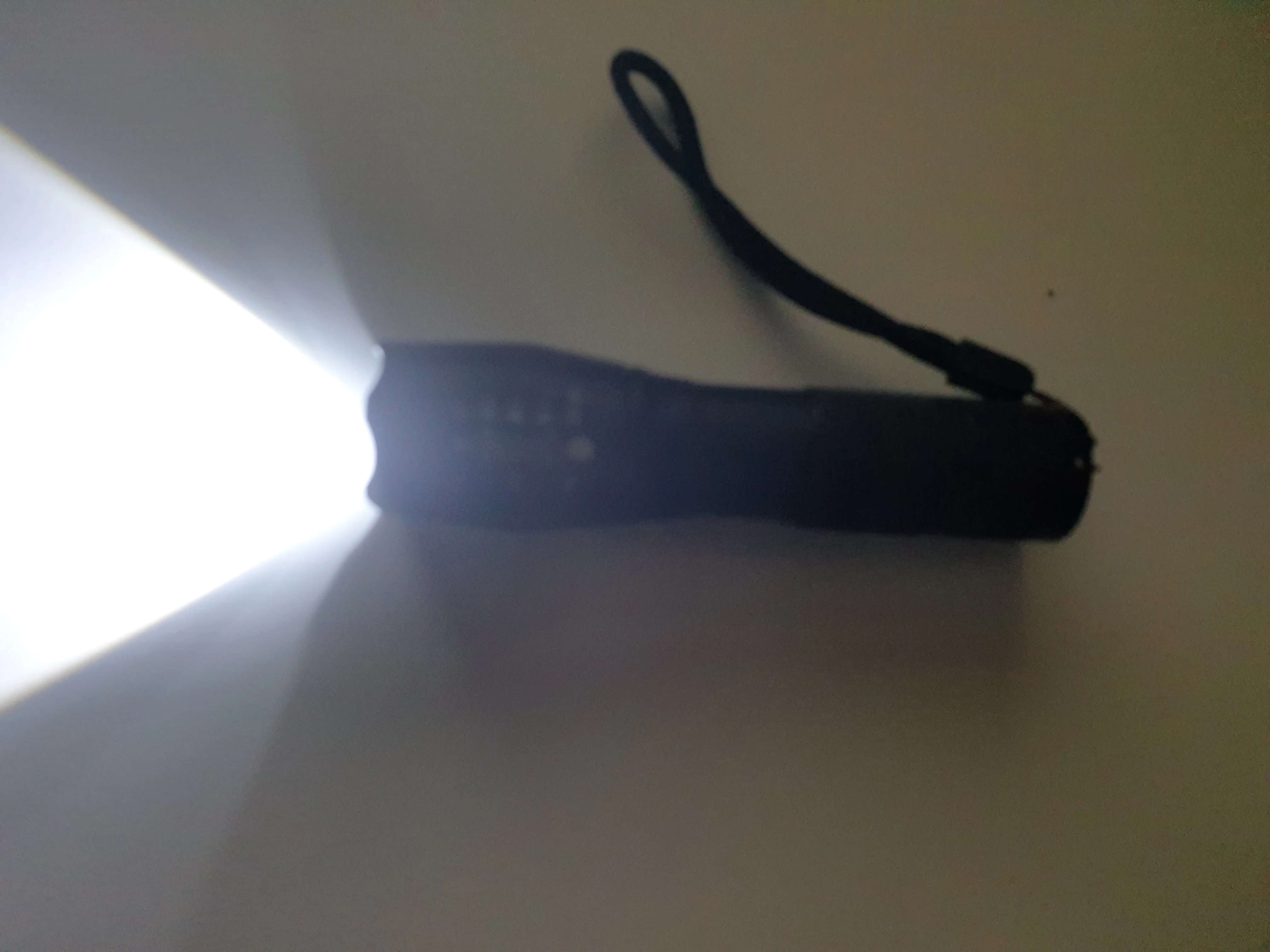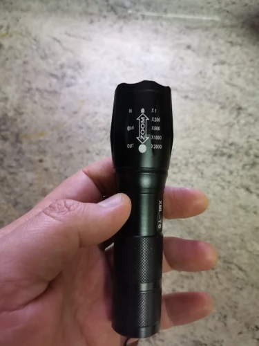 Один проход фонарика для размера, который он имеет, он очень хорошо освещает, Регулируемый зум, металл, три режима интенсивности и два мигания, за свою цену чаша! Он работает с 3 батареями aaa или с батареей 18650, я рекомендую вам купить батарею 18650, которая держит гораздо больше, чем батареи