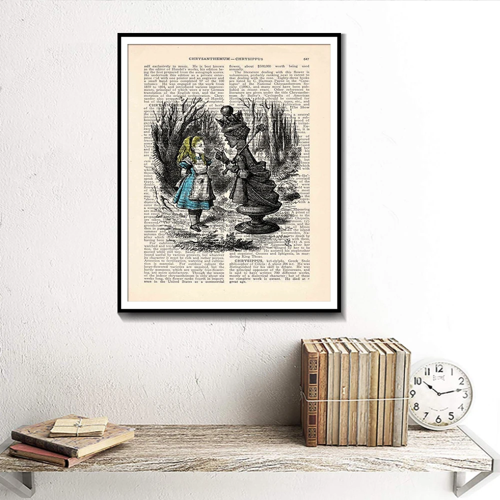 Плакаты Алиса в стране чудес, настенная художественная книга, словарь страниц, печать, настенный Декор, живопись на холсте, винтажная картина для дома, без рамки