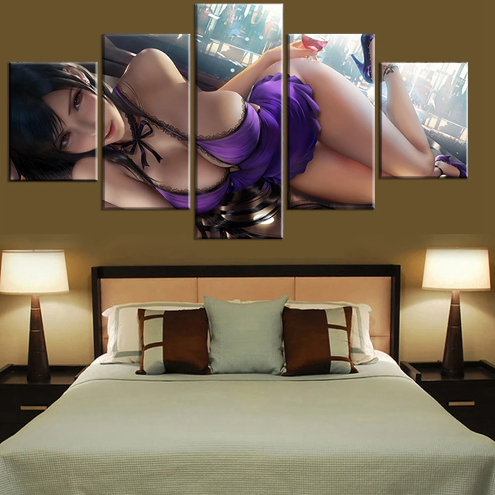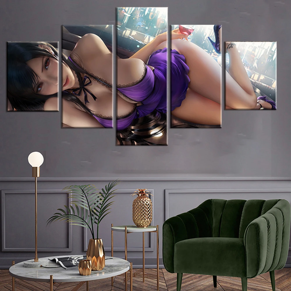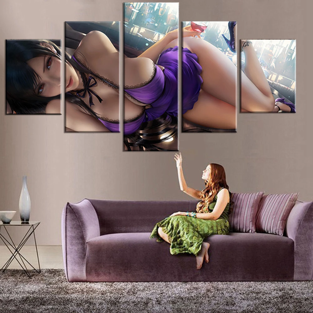 5 шт. FF7 переделка игры плакаты, постеры HD Сексуальная аниме-девушка TIFA FF7 игры Искусство Холст Картина для гостиной Декор стен