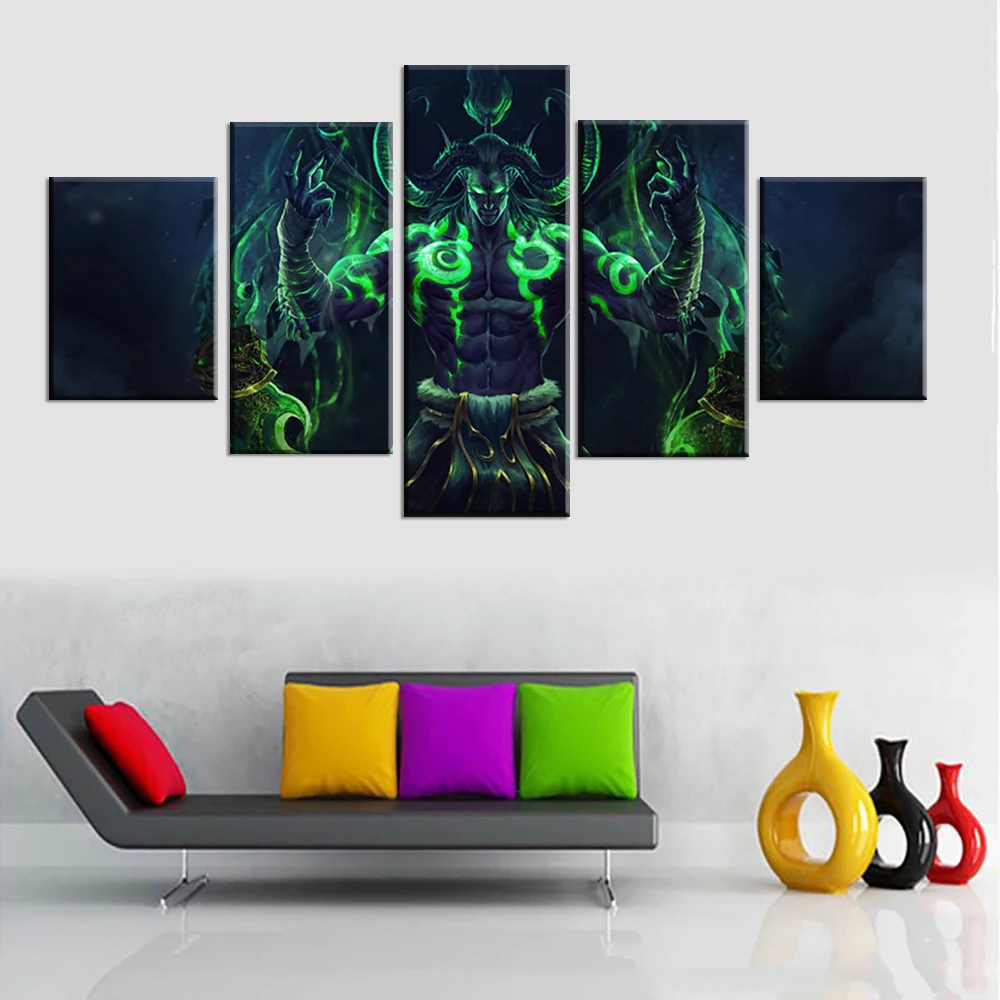 5 панелей, Иллидан, Stormrage, World of Warcraft, игровой постер, рисование, искусство, HD, холст, настенная живопись для домашнего декора, рамка Artwor