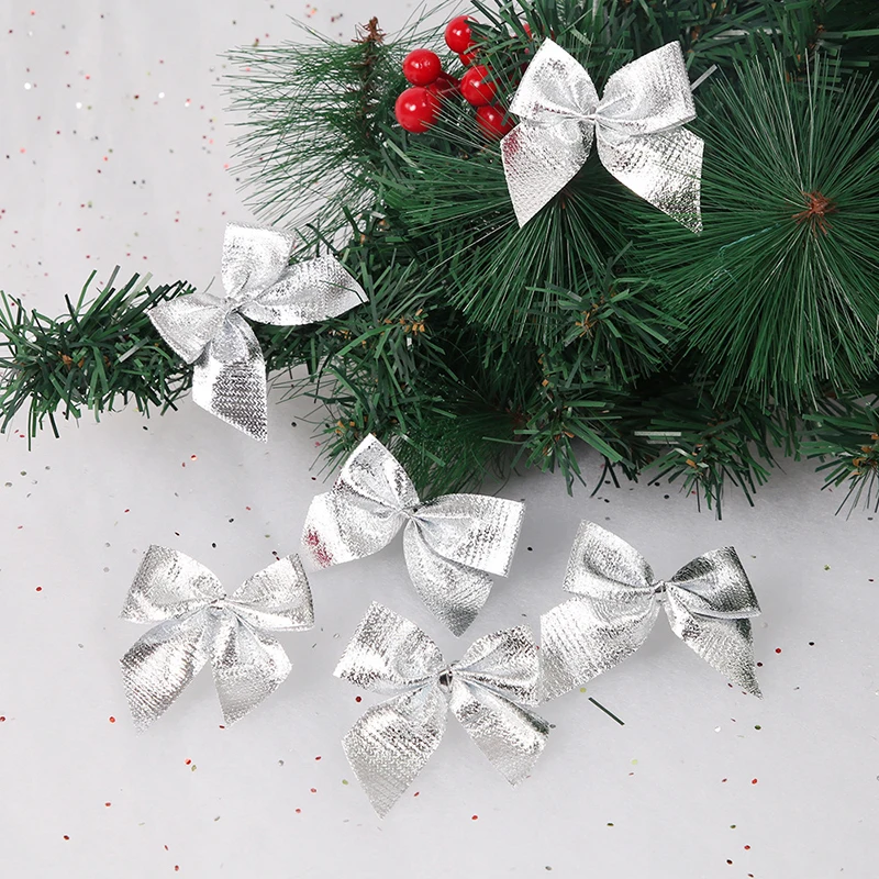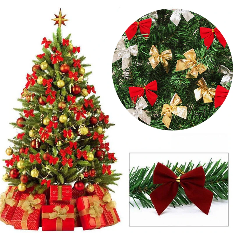 12 шт., рождественские банты, подвесные украшения, золотой, серебряный, красный бант, украшения для новогодней елки, новый год 2021, Рождественский Декор, набор