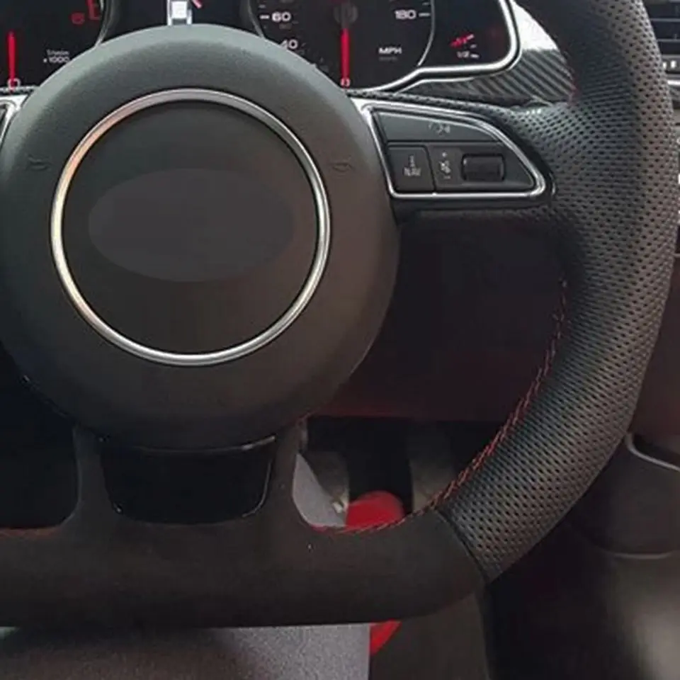 Чехол рулевого колеса автомобиля DIY ручной работы черного цвета из натуральной кожи и замши, для Audi A5 A7 RS7 S7 SQ5 S6 S5 RS5 S4 RS4 S3 2012-2018