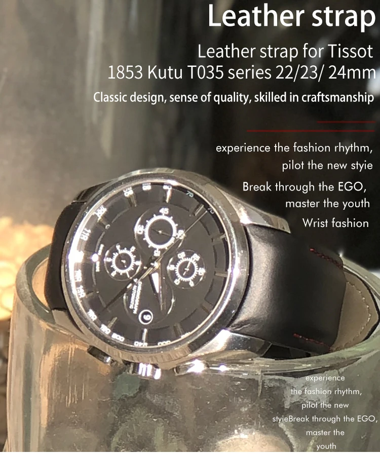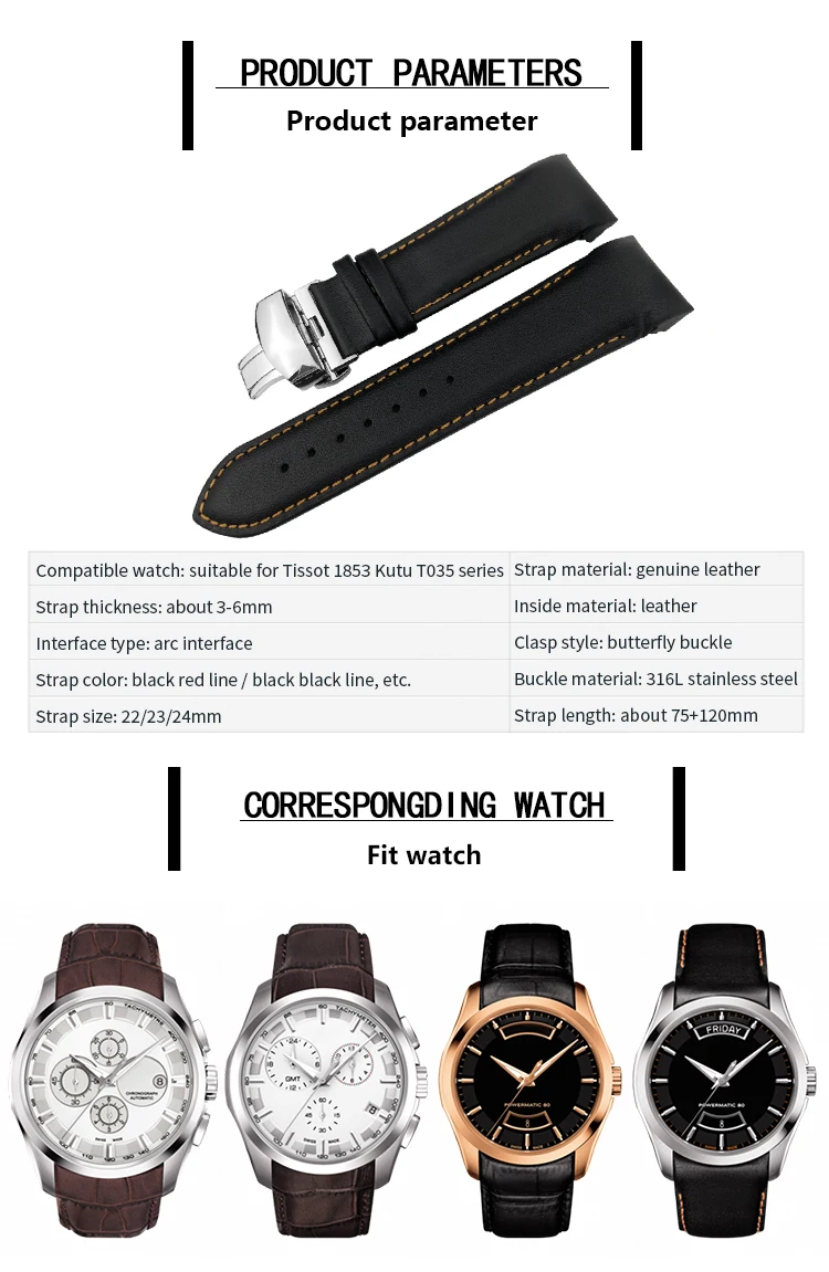 Ремешок для часов Tissot T035 мужской из натуральной воловьей кожи, сменный браслет с застежкой-бабочкой, 22 мм 23 мм 24 мм