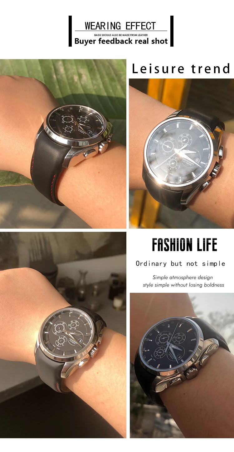 Ремешок кожаный для мужских часов, черный синий коричневый браслет ...
