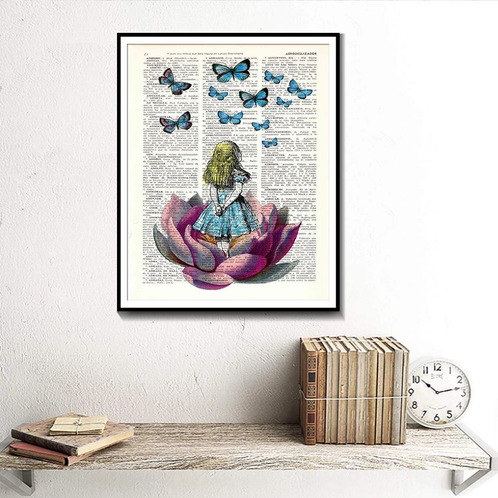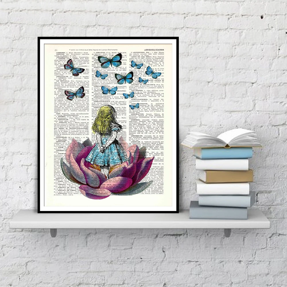 Алиса в стране чудес ищет синюю бабочку винтажный словарь художественные плакаты и принты Современный домашний декор холст картина