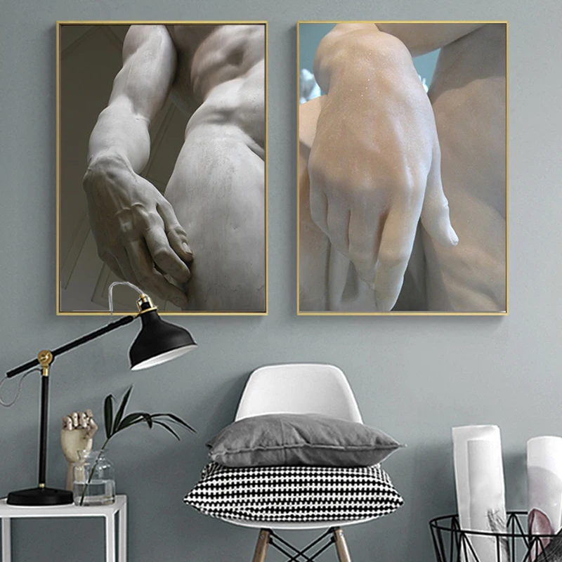 Абстрактная скульптура Микеланджело картина маслом на холсте Черно-белые плакаты и принты Давида Настенная картина для декора гостиной