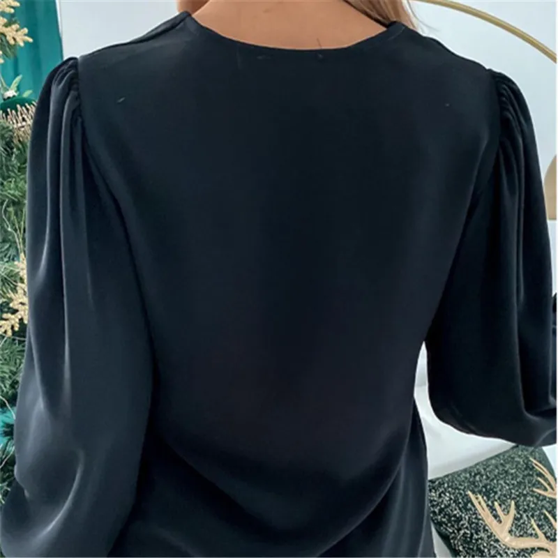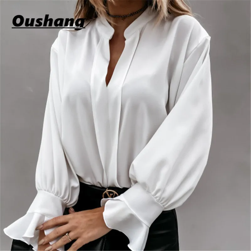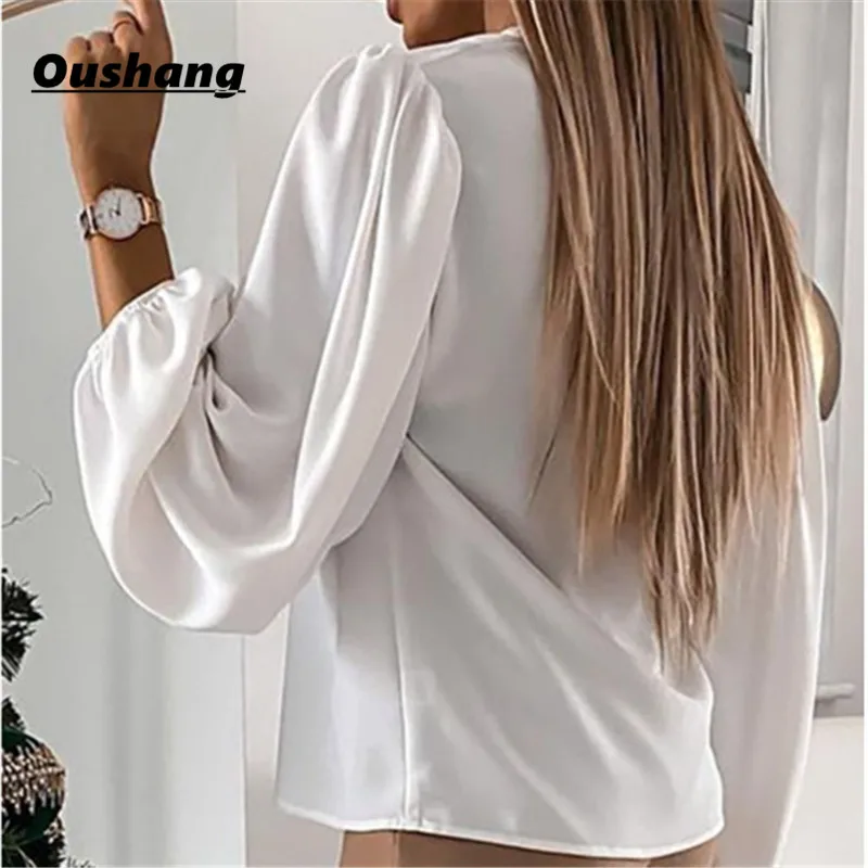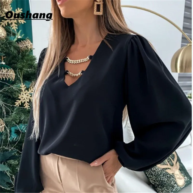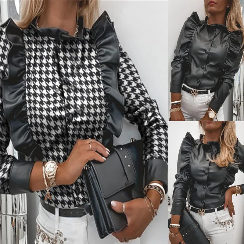 Повседневные черные клетчатые рубашки Oushang, женские блузки с гофрированным воротником, женская элегантная офисная рубашка с длинным рукавом на осень и весну