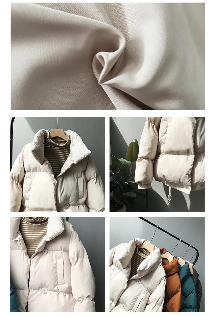 Женская модная хлопковая пуховая бежевая куртка, пальто для женщин, Casaco Feminino, Новое Женское зимнее теплое плотное пальто с воротником-стойкой