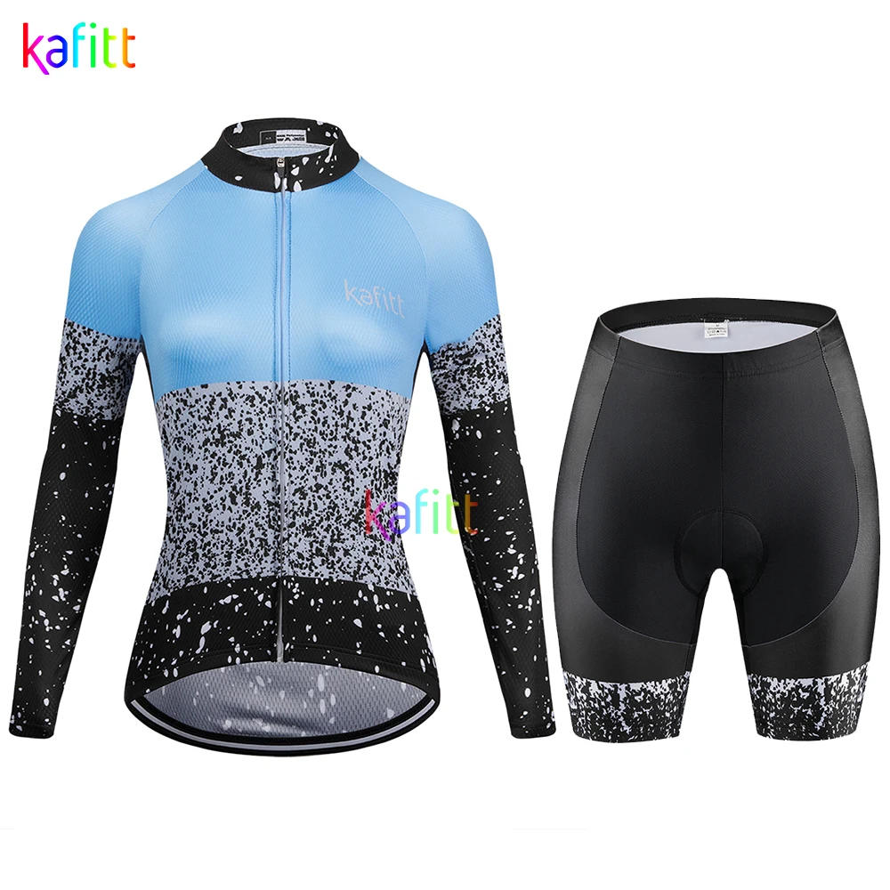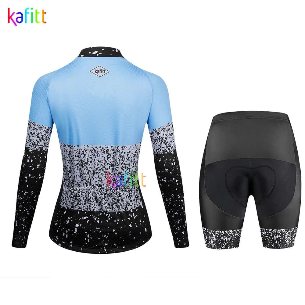 Женский трикотажный комплект cafitt с длинным рукавом, синие комплекты из Джерси для езды на велосипеде, короткие брюки для горных велосипедов