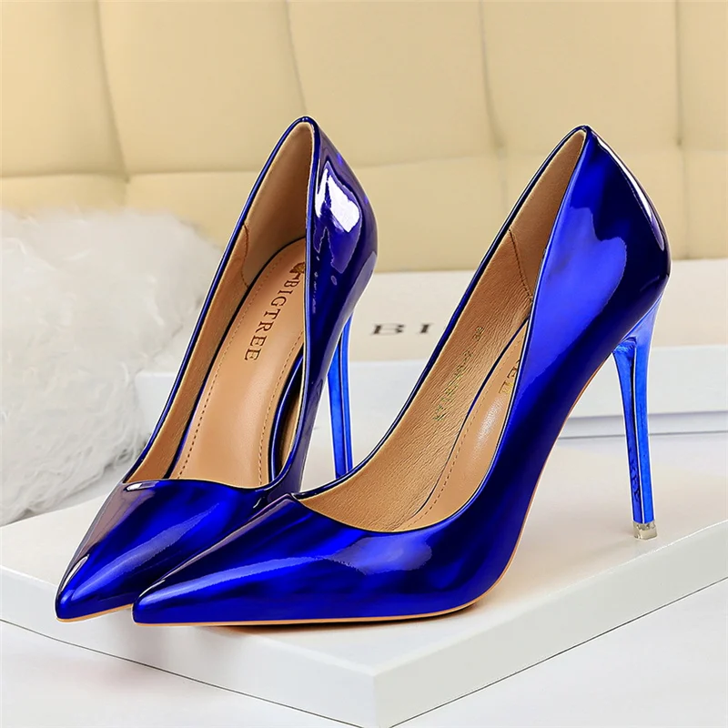 Туфли-лодочки женские из лакированной кожи, на высоком каблуке 10,5 см, синего и зеленого цветов, размеры 42, 43