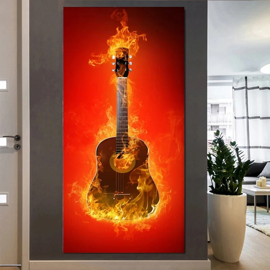 5d алмазная живопись, абстрактное пламя, гитара, алмазная вышивка, мозаика, квадраты, настенные художественные картины для декора гостиной