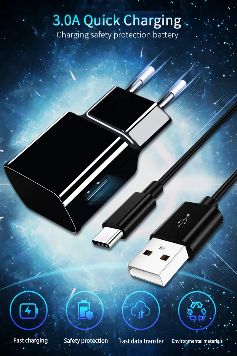 Кабель USB C, зарядное устройство для быстрой зарядки QC 3,0, европ...