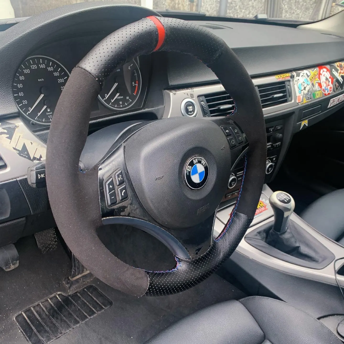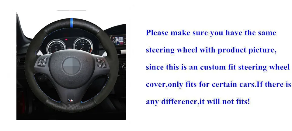 Ручной работы черная замша чехол рулевого колеса автомобиля для BMW...