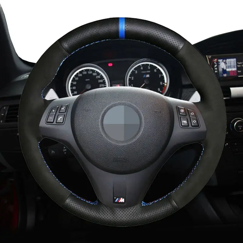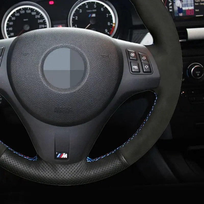 Черная замша из натуральной кожи чехол рулевого колеса автомобиля для BMW M спортивные M3 E90 E91 E92 E93 E87 E81 E82 E88