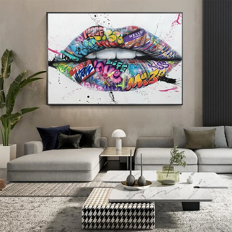 Алмазная 5D картина сделай сам в виде губ с граффити, Набор для вышивки крестиком, мозаика, круглые стразы, подарки ручной работы, украшение для дома