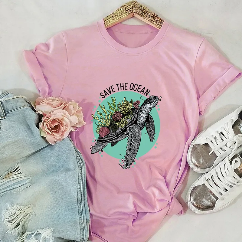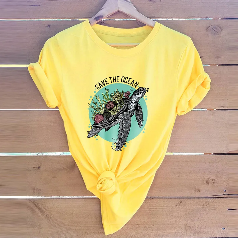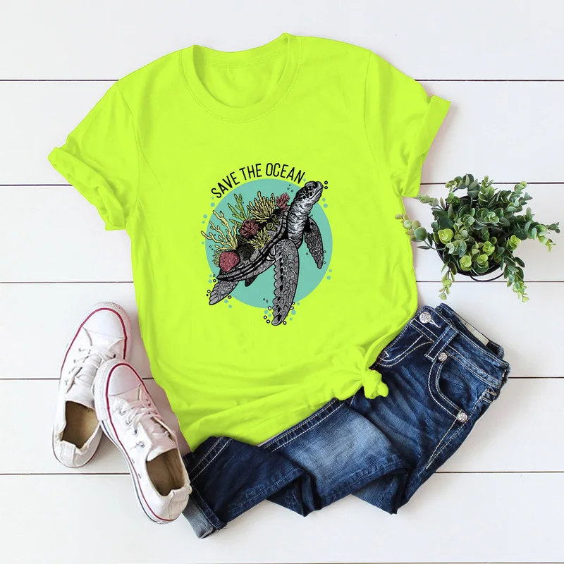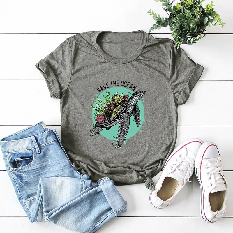 Женская футболка JFUNCY размера плюс, футболка из 100% хлопка, женские футболки, летние свободные топы, Новая женская футболка с надписью Save The Ocean