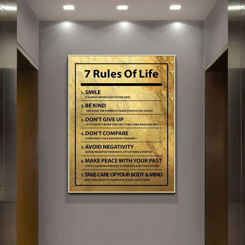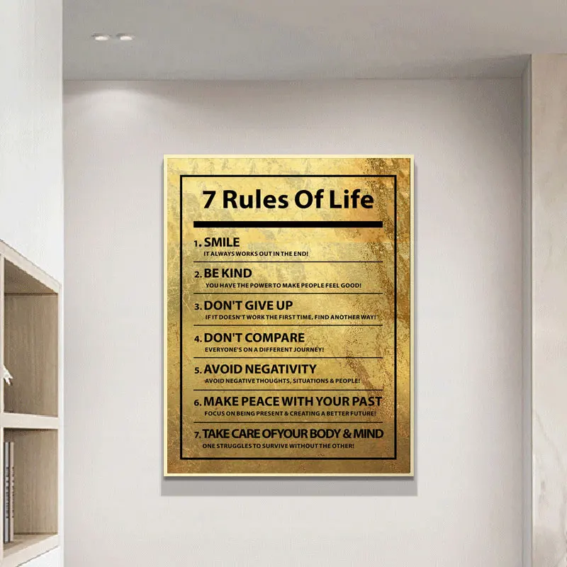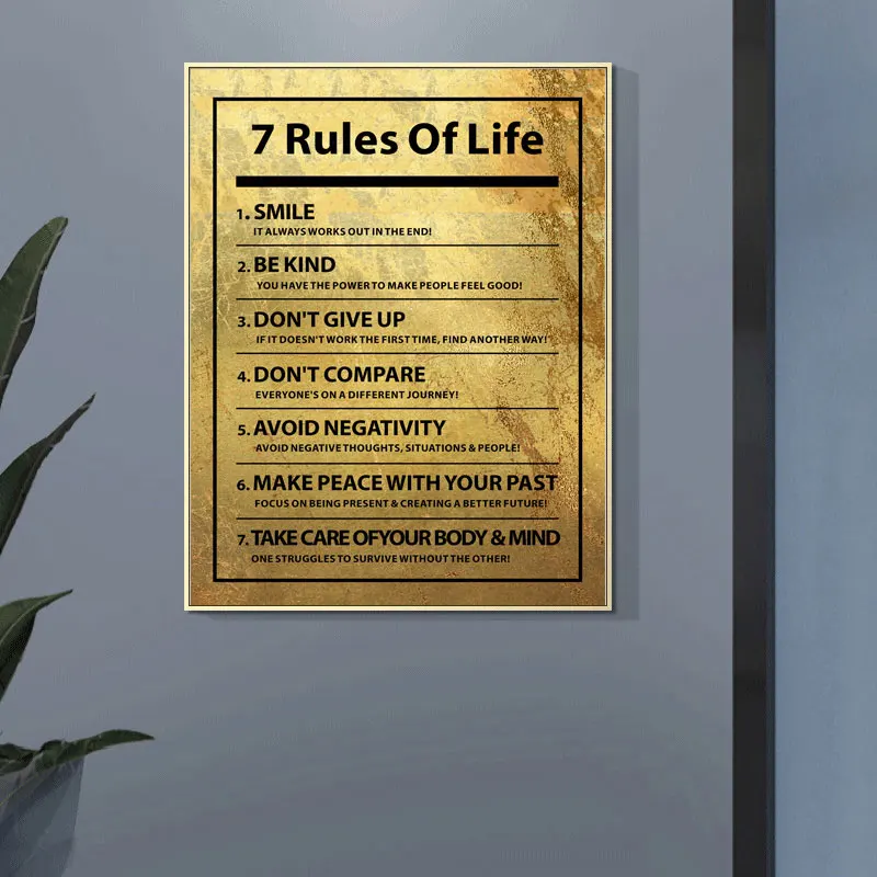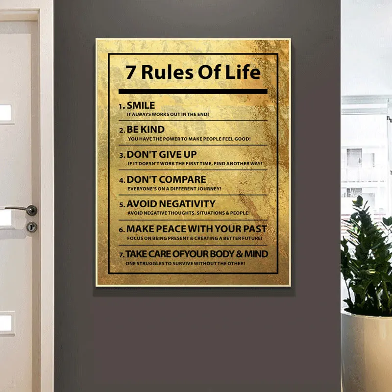 7 правил жизни мотивационные картина с цитатой на стену Золотой постер вдохновляющая Настенная картина Искусство Декор для гостиной