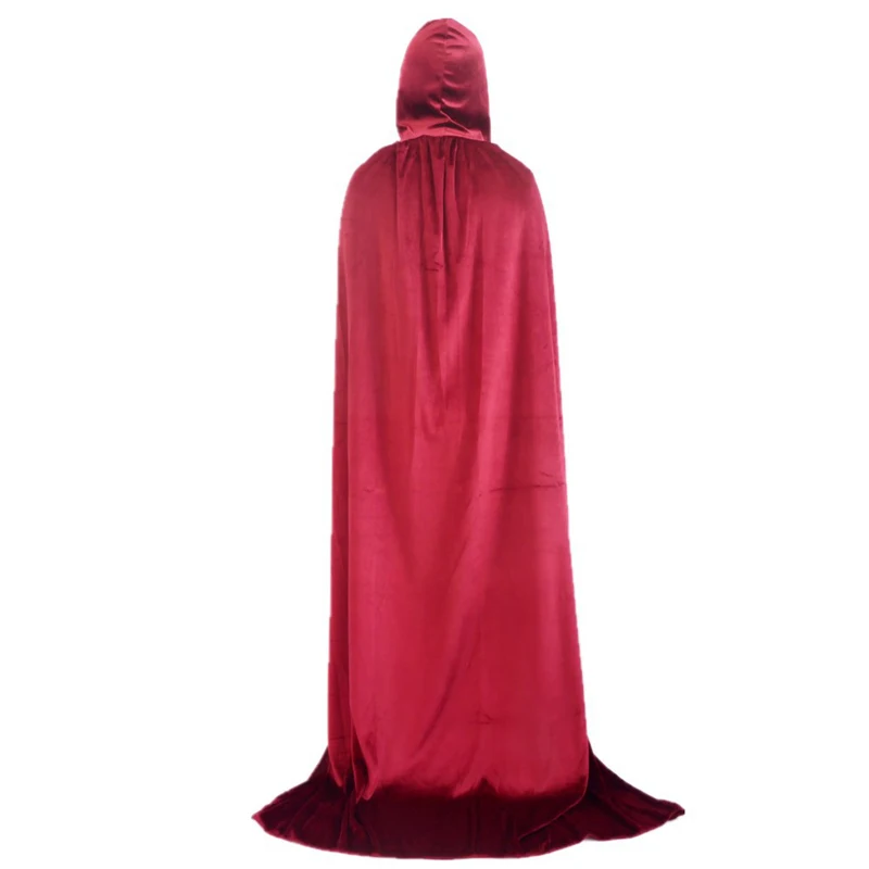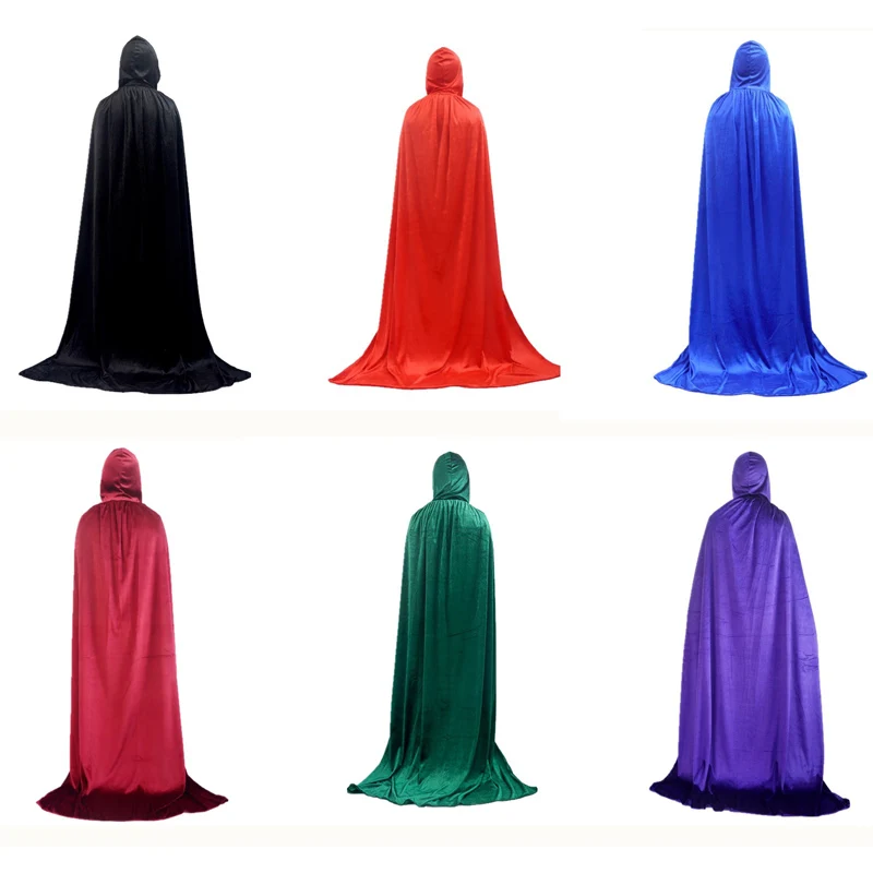 Бархатные взрослый ребенок Костюмы для косплея Для женщин мужчин фиолетового и зеленого цветов, красные, Черные Длинный плащ с капюшоном Смерти готические Heroic Хэллоуин вечерние ведьма