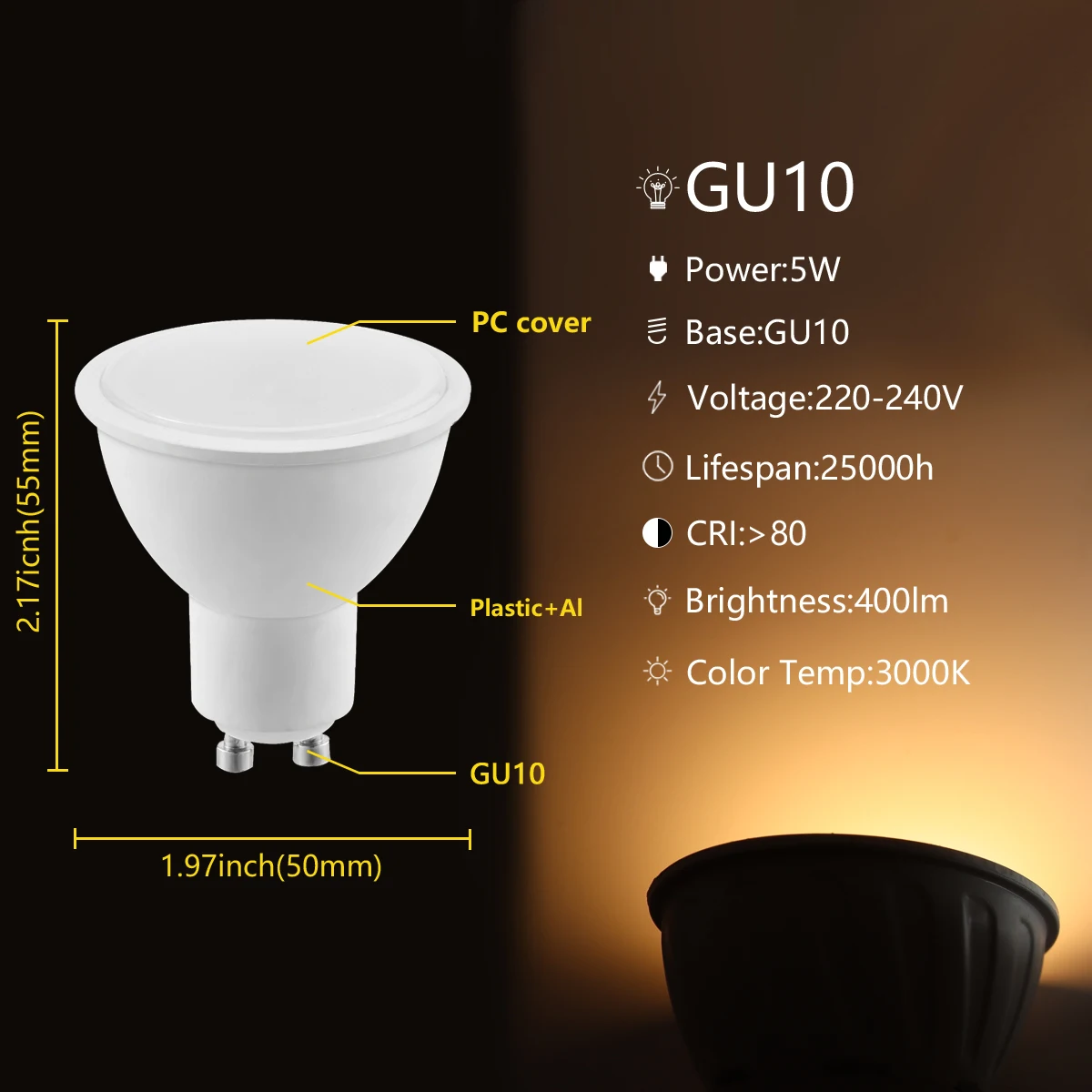Суперъяркий, энергосберегающий, теплый, холодный белый свет Gu10, 5 Вт, Foco, Светодиодный точечный светильник s, 220 В светильник лампочки, потолочная лампа для дома