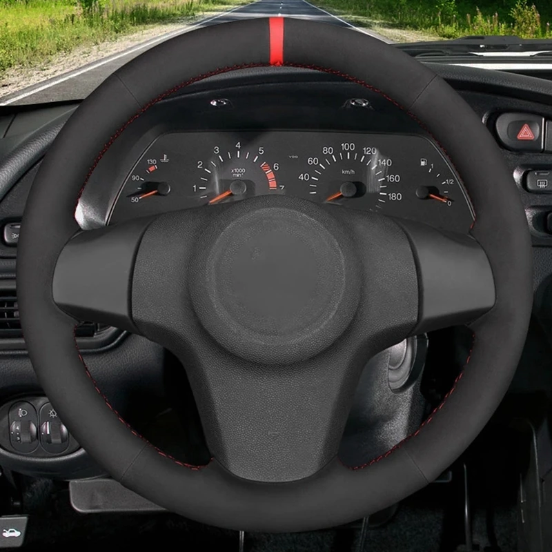 Черная замша Вручную прошитый чехол рулевого колеса автомобиля для ...