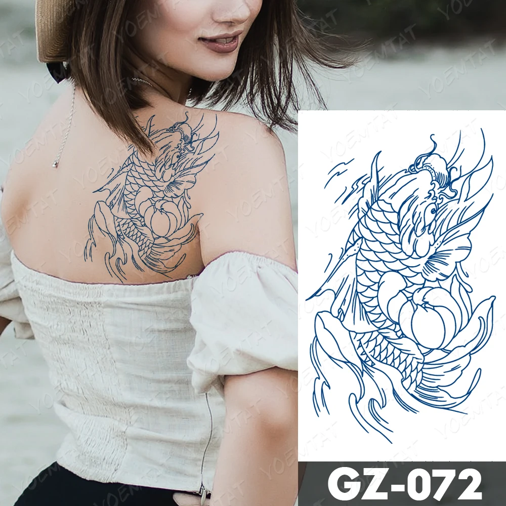Стойкая водостойкая Временная тату-наклейка Juice Ink, тату-наклейка Koi Lotus Totem Flash, женские японские руки, боди-арт, искусственная татуировка для мужчин