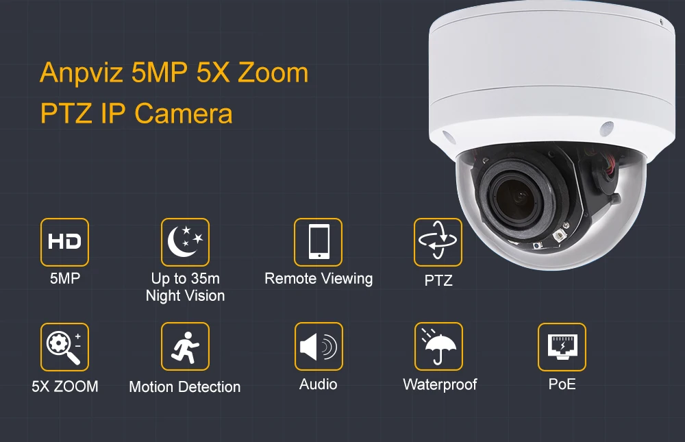 IP-камера Anpviz, 5 Мп, PTZ, 2,7-13,5 мм, IP66, ИК, 35 м, H.265, P2P