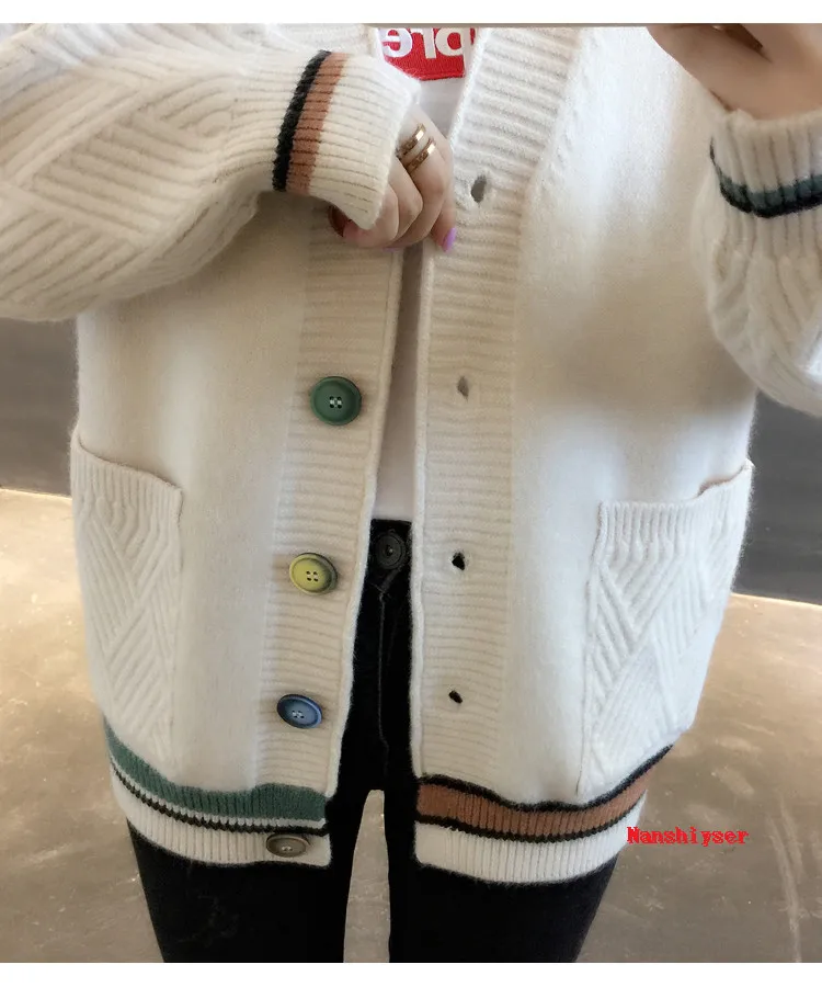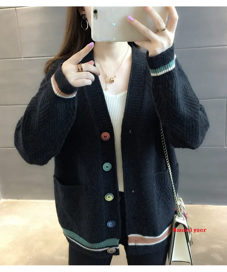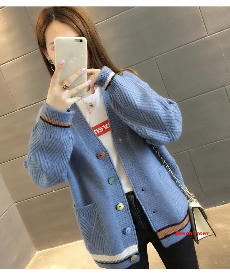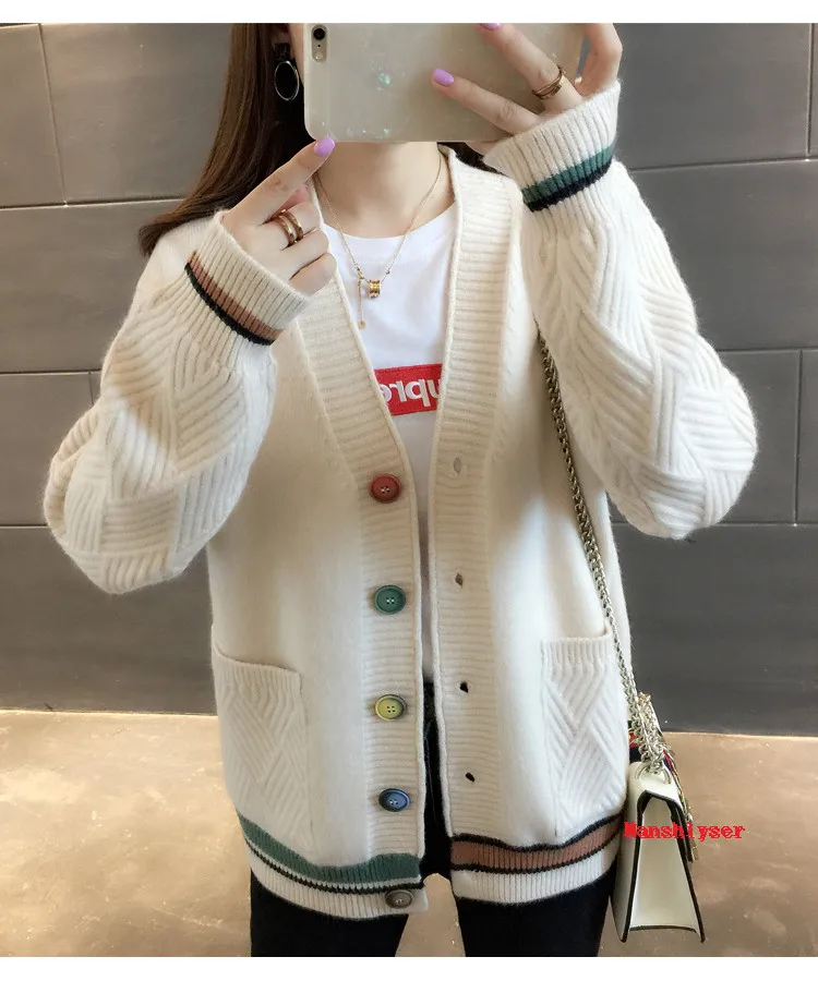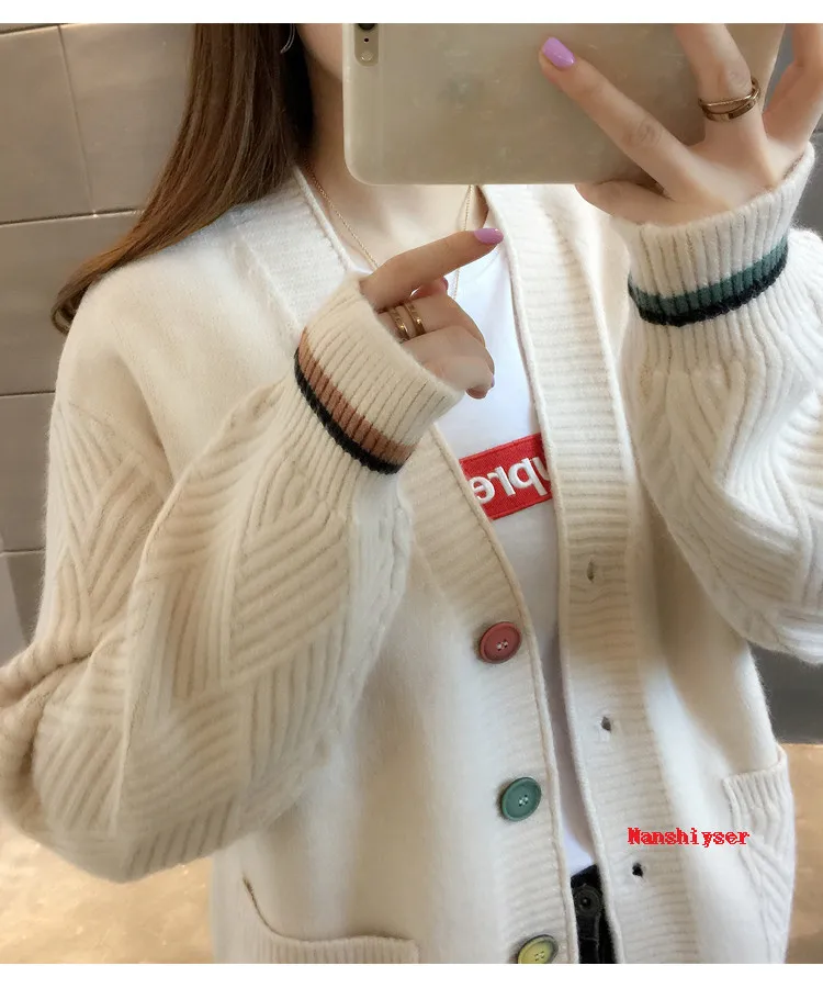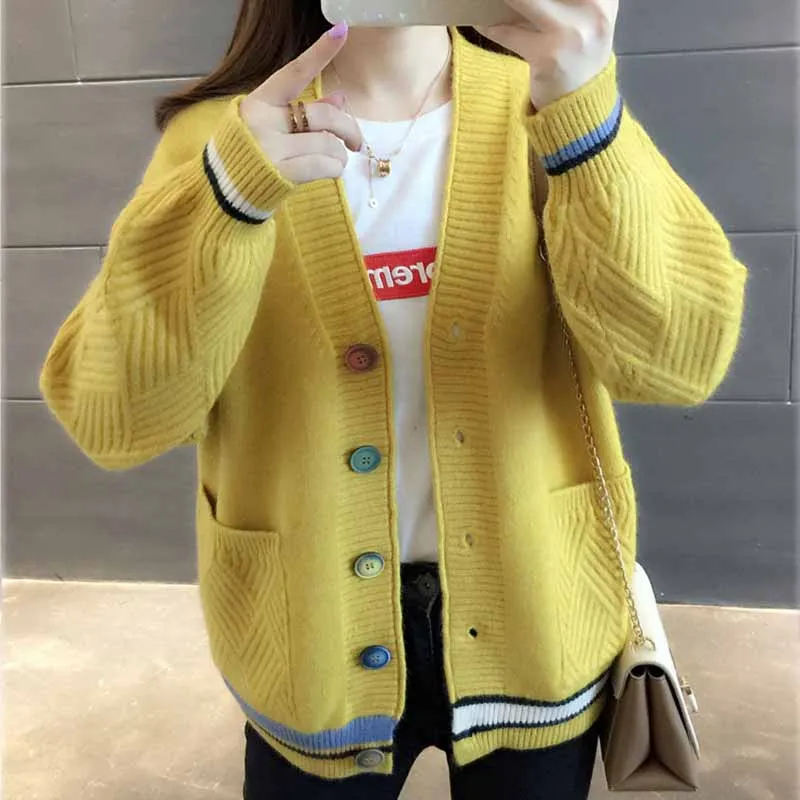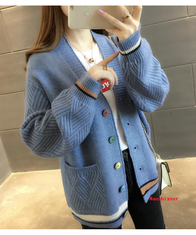 Женский однобортный вязаный кардиган, Повседневная Свободная теплая трикотажная одежда с V-образным вырезом, Осень-зима 2022
