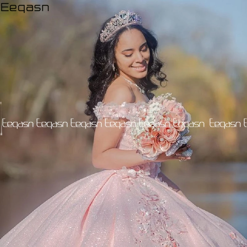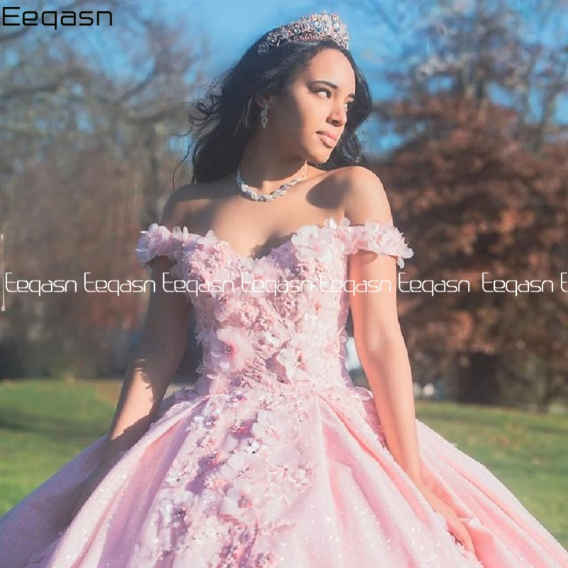 Женское бальное платье, розовое Пышное Платье с аппликацией в виде цветов, 16 лет, 2021, пышные платья для выпускного вечера