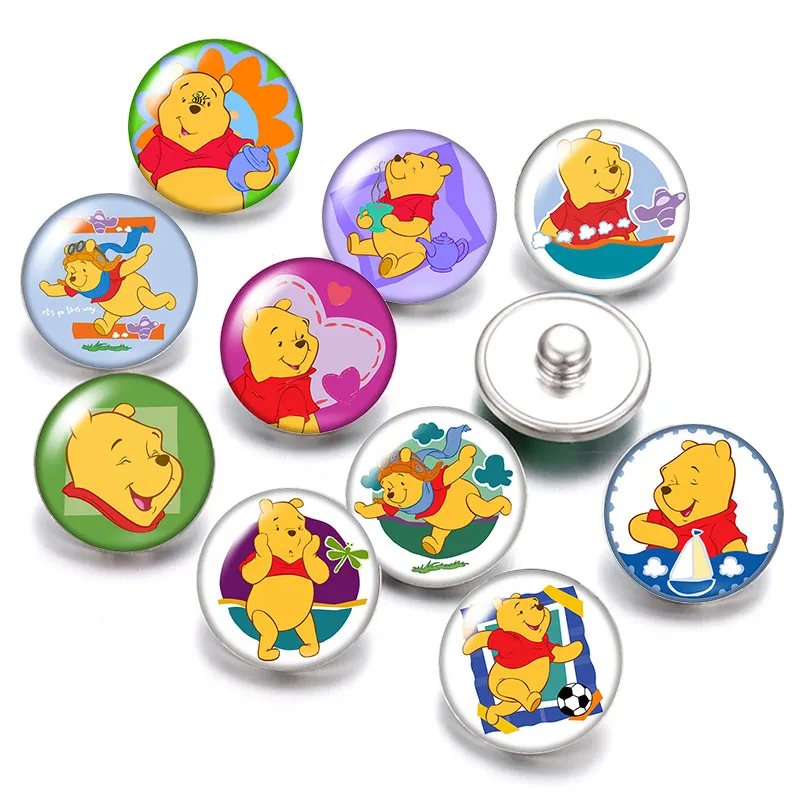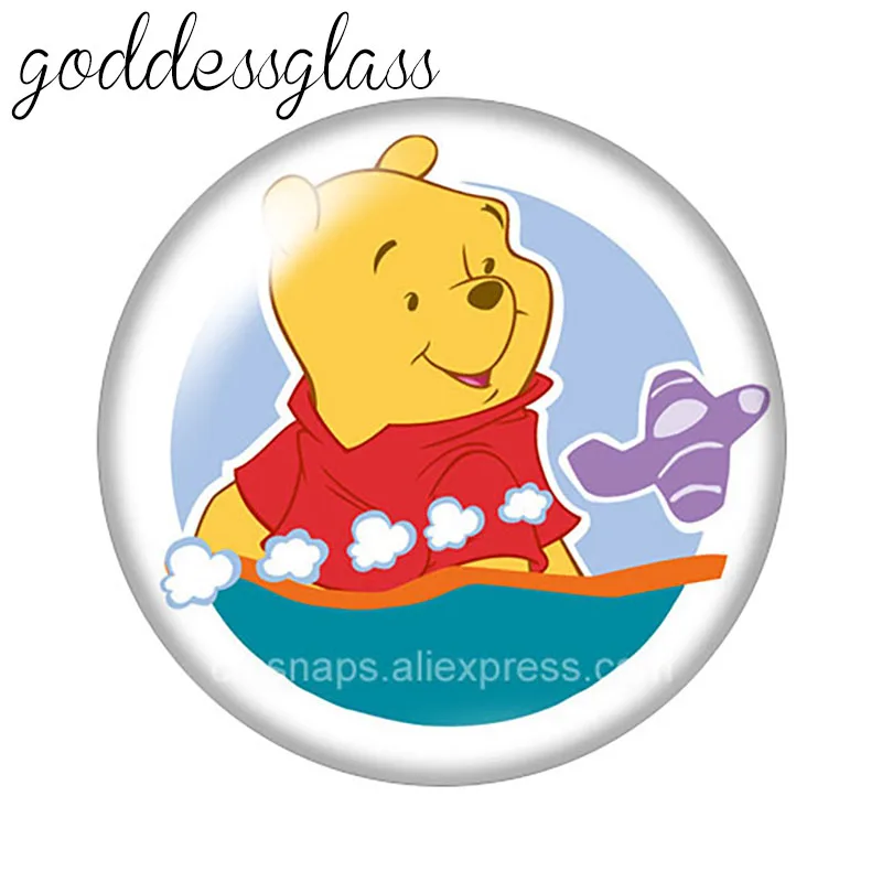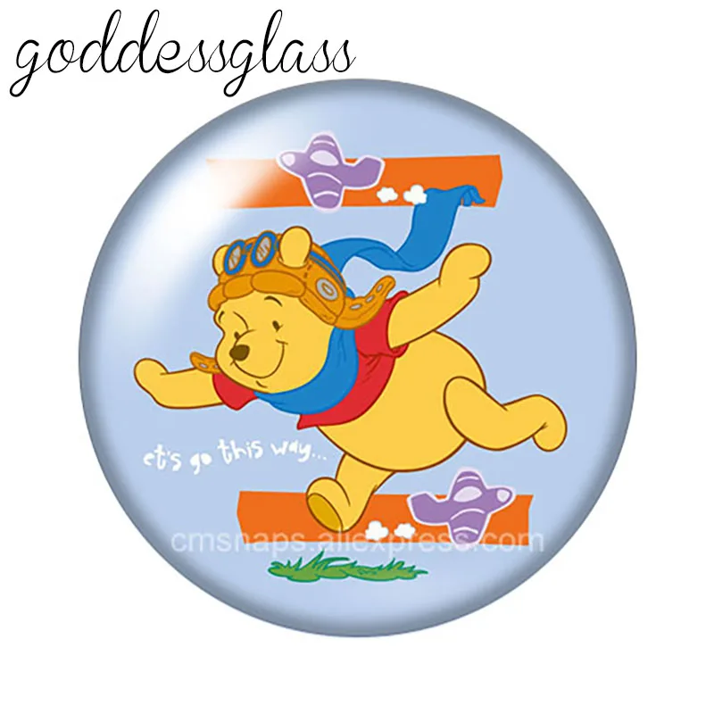 Стеклянный кабошон с изображением Винни-Пуха, 18 мм, 10 шт.