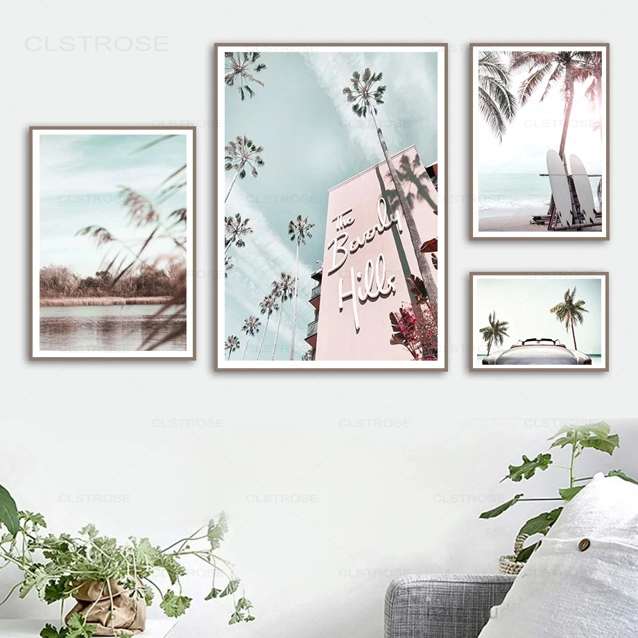 Скандинавский пейзаж, холст, Постер, океан, пляж, пальма, искусство...