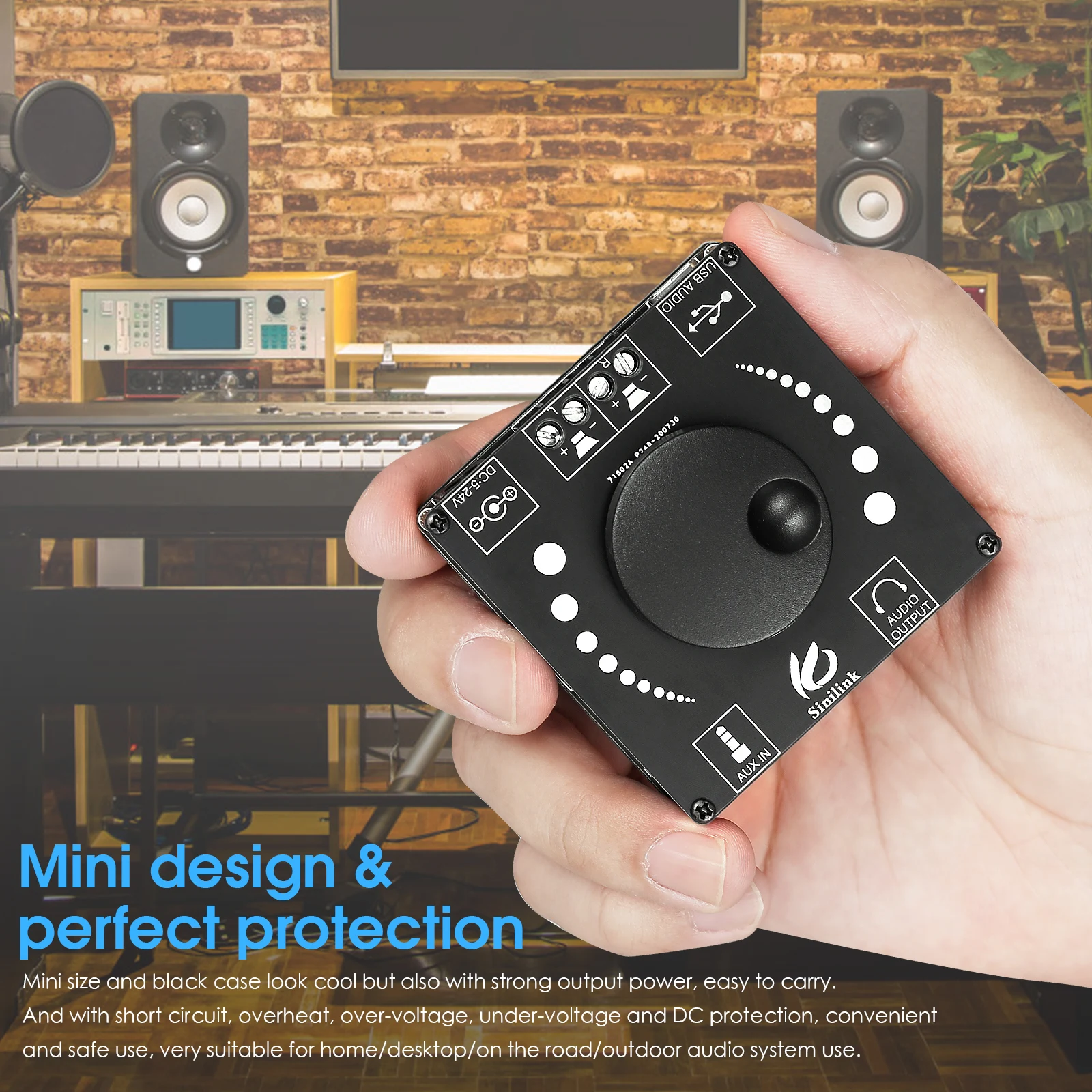 [Мини-дизайн и идеальная защита]: мини-размер и черный Чехол выглядят круто, но также с сильной выходной мощностью, легко носить с собой. И с защитой от короткого замыкания, перегрева, перенапряжения, низкого напряжения и постоянного тока, удобное и безопасное использование, очень подходит для домашнего/настольного/дорожного/наружного использования аудиосистемы.
