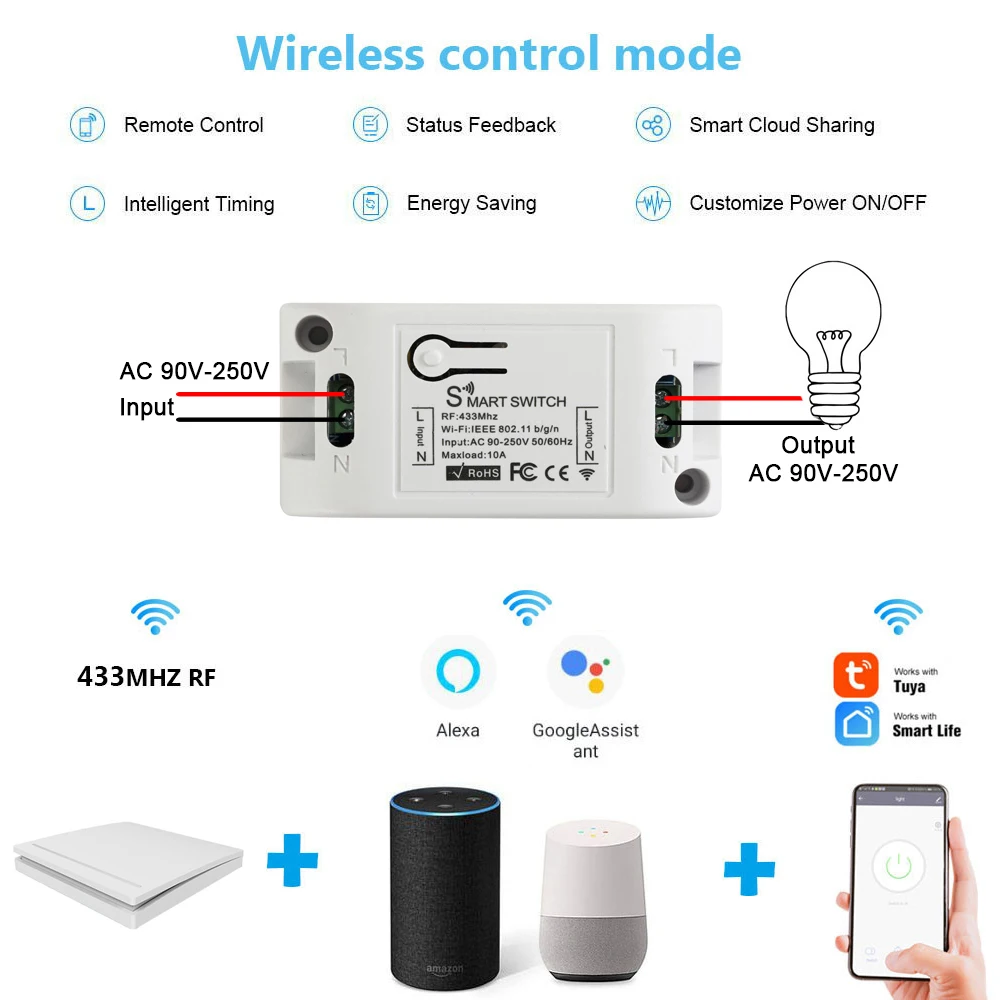 Transmission Mode433MHz RF or wifi remote control