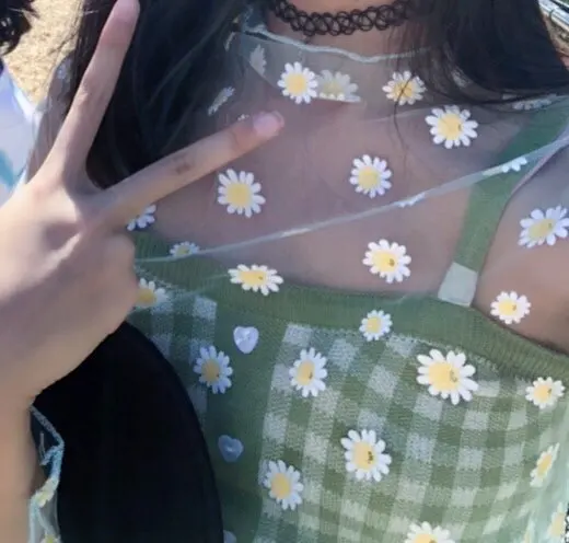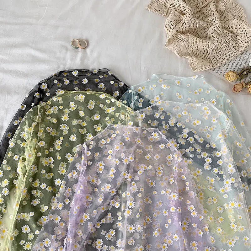 Сетчатый топ с маргаритками в Корейском стиле, новая эстетическая Милая футболка в стиле Харадзюку, прозрачный сетчатый топ с длинным рукавом