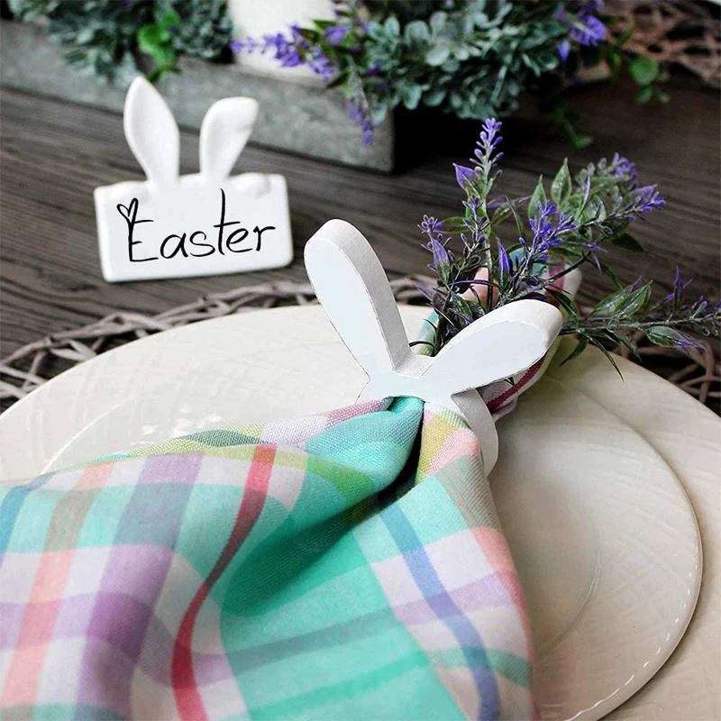 14 шт. дерево Пасхальный кролик кольцо для салфеток держатели заячь...