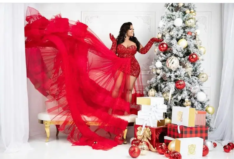 Женская фатиновая Юбка со съемным шлейфом, красная юбка с оборками, длина 120 см