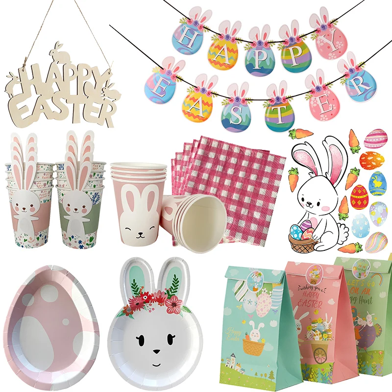 1 шт., пасхальное украшение, кролик, кролик, яйцо, форма, баннер, чашка, тарелка, подарочные пакеты, пасхальные вечерние, декоративные, одноразовые, столовые принадлежности, вечерние