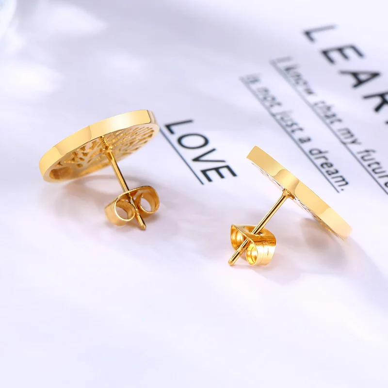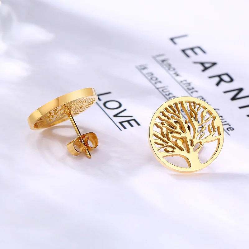 Золотые Семейные гвоздики Дерево Серьги Дерево жизни, серьги из нержавеющей стали