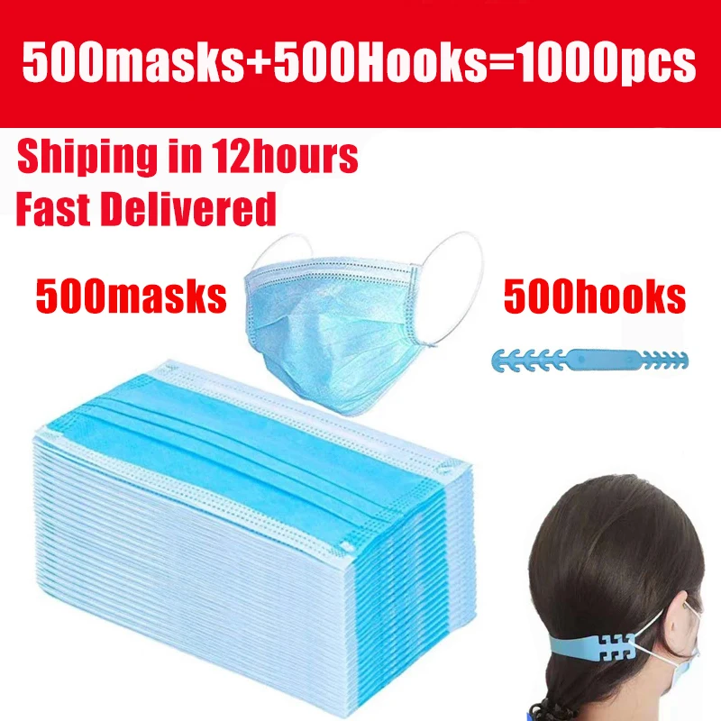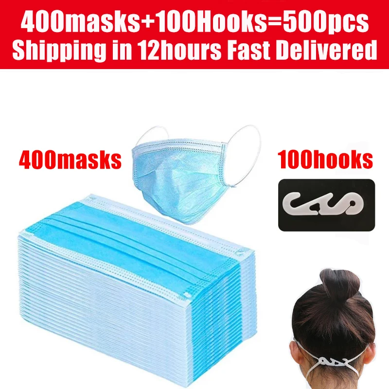 Маска Защитная одноразовая для взрослых, трехслойная Нетканая маска с фильтром от пыли и капель, с крючками