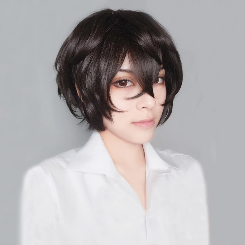 Парик высокого качества для косплея «бродячие псы», дазай Осаму, короткие каштановые кудрявые волосы, термостойкий парик + шапочка для парика