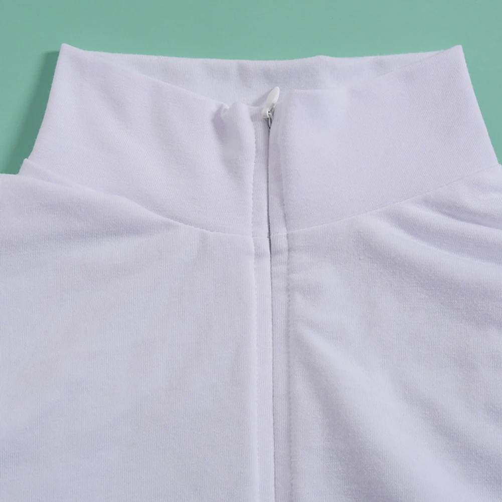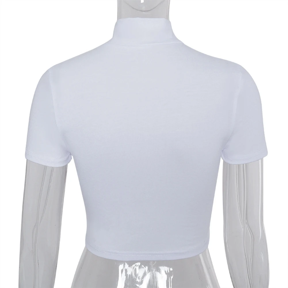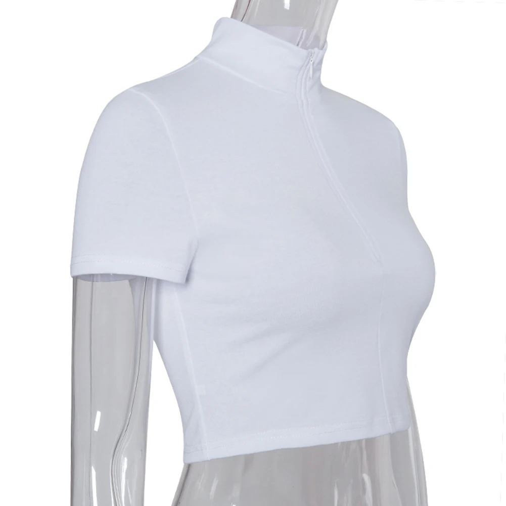 type1White Summer T Shirt Women Casual Stretch Zipper