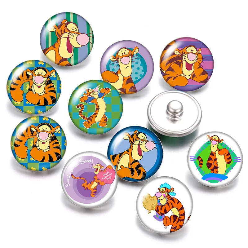 Disney мф Винни-Пуха и Винни-Пуха друг тигра 10 шт. круглый фото стекло кабошон 18 мм кнопки для 18 мм Оснастки браслеты ювелирные изделия оптом