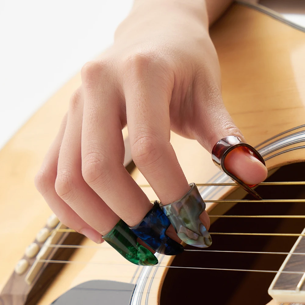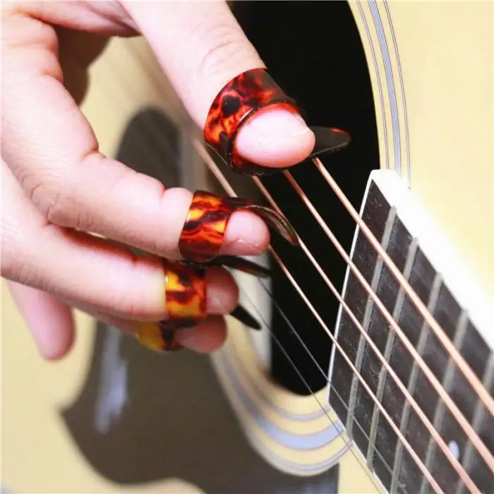4 шт.компл. 1 Thumb + 3 пальца целлулоидные медиаторы для гитары Fingerpicks Гитарного медиатора оболочка для акустической Электрогитары Толщина ZXH