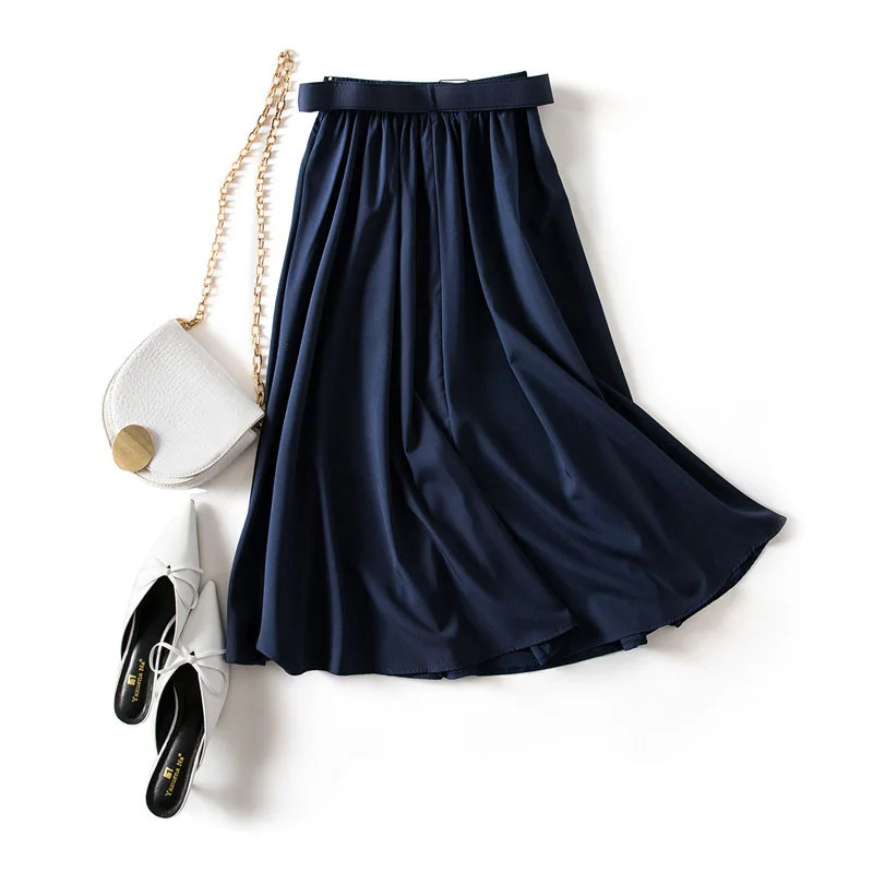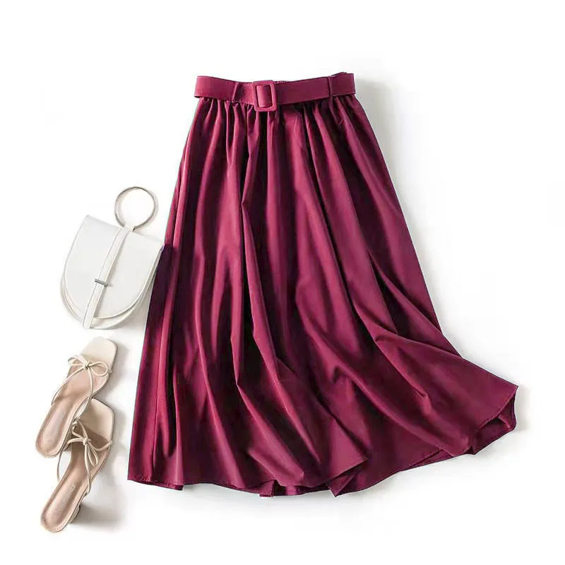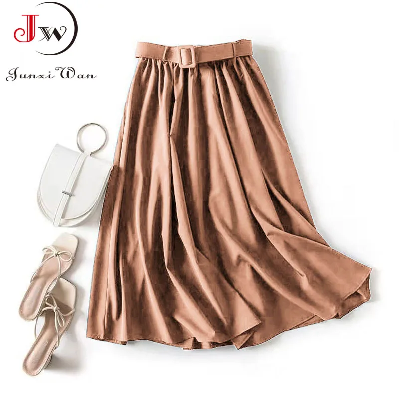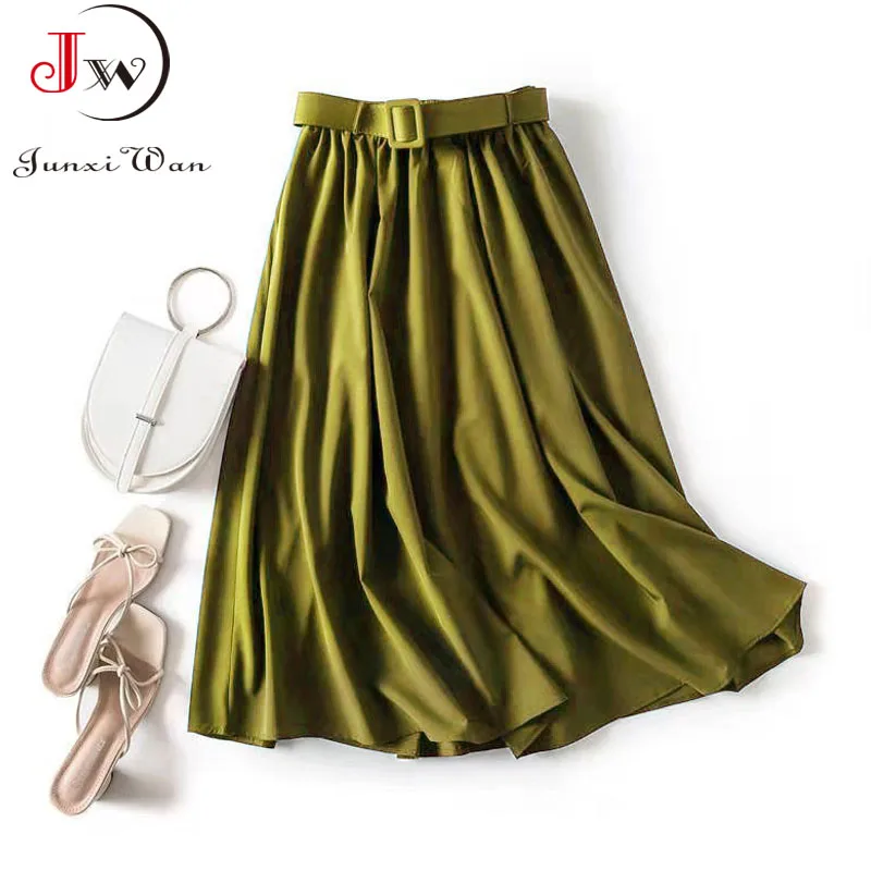 Повседневная элегантная женская юбка 2022 сезон весна-лето; Однотонная юбка с высокой талией пояс ТРАПЕЦИЕВИДНОЕ винтажное платье офисные вечерние длинные юбки Faldas