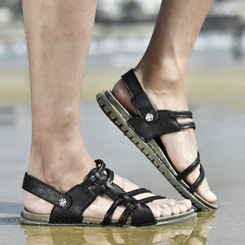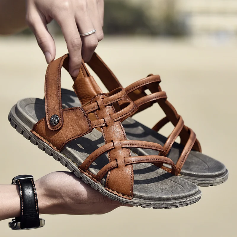 Сандалии мужские из натуральной кожи, Классические римские тапочки,...