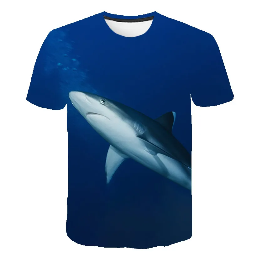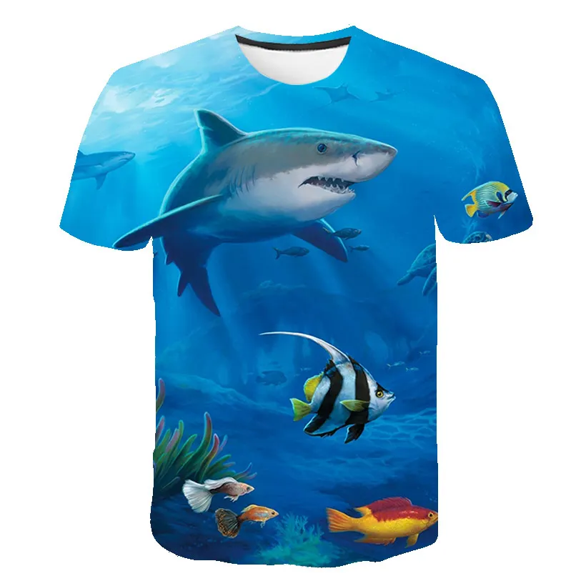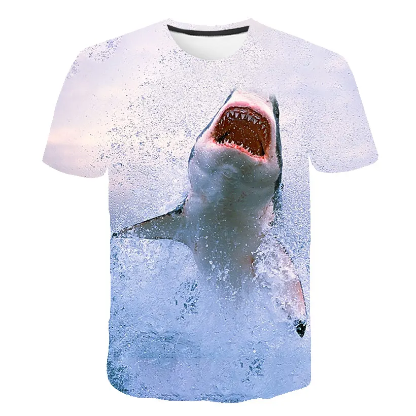 Летние топы 2021, Детская футболка с изображением маленькой акулы, модная футболка с коротким рукавом для мальчиков, с круглым вырезом и рисунком, женские топы с рисунками