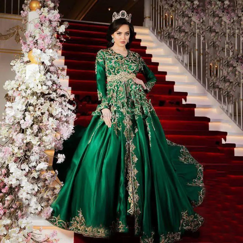 SoDigne арабский мусульманское вечернее платье элегантное платье с v-образным вырезом одежда с длинным рукавом, с золотистым расшитым узором Выходные туфли на выпускной платье размера плюс, женские вечерние торжественное платье