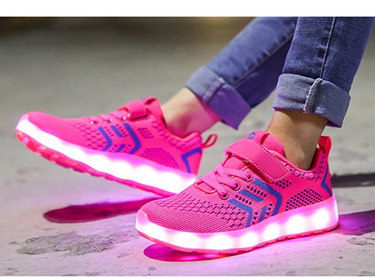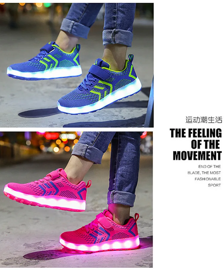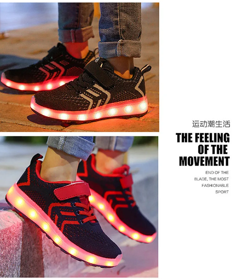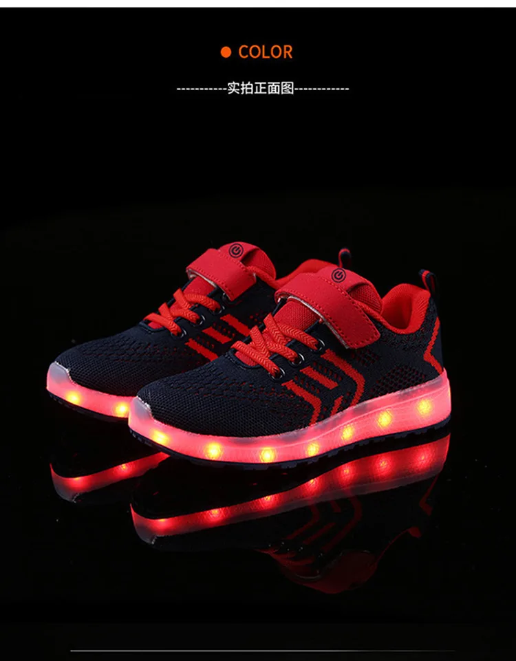 Кроссовки Детские со светодиодной подсветкой, для мальчиков и девочек, зарядка через USB, обувь с подсветкой, Размеры 25-37