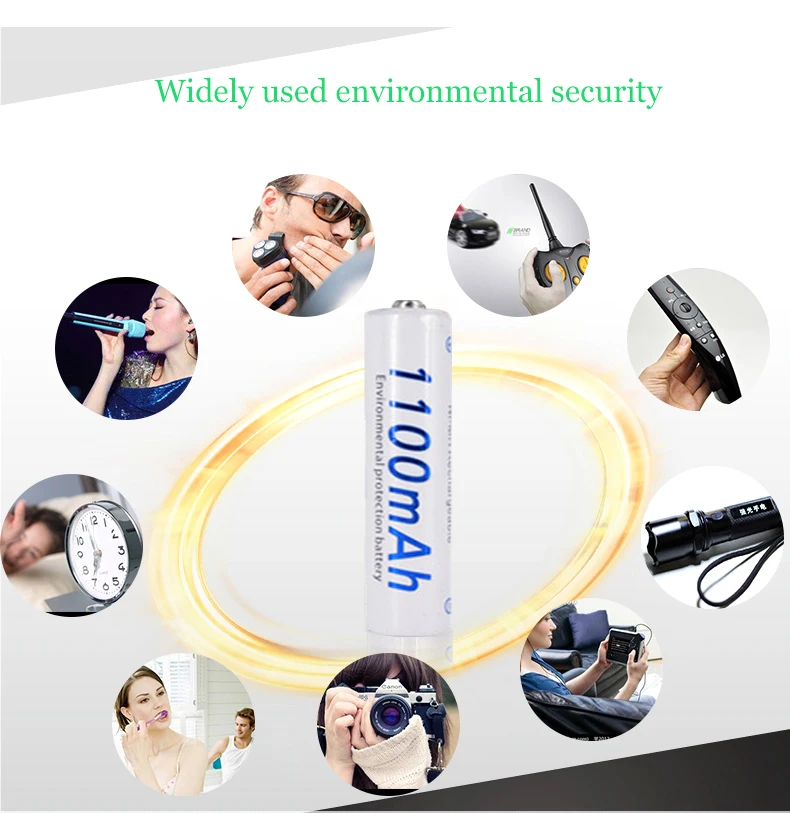 1. Высокая скорость удержания.2. Сильная способность удерживать напряжение батареи.3. Низкая скорость потери емкости аккумулятора.4. Длительный и стабильный Срок службы батареи.5. Высокая производительность разряда.Применение батареи:1. Игрушки, цифровые камеры, игровой плеер, MP3/mp4 плеер2. Фонарик3. Пульт дистанционного управления4. Домашний телефон5. Бытовые электрические приборы6. Широко используется для нашей повседневной жизни и т. д.Особенности аккумулятора:Тип: никель-металлогидридный низкоразряжающийся аккумуляторРазмер: AAAРазмер: Диаметр * Высота = 43(-0,5) мм * 10 м (-1,0) ммНоминальное напряжение: 1,2 VЕмкость: 550 мАч +Сертификация: CE, ROHS и т. Д.Цикл перезарядки: 1800 раз