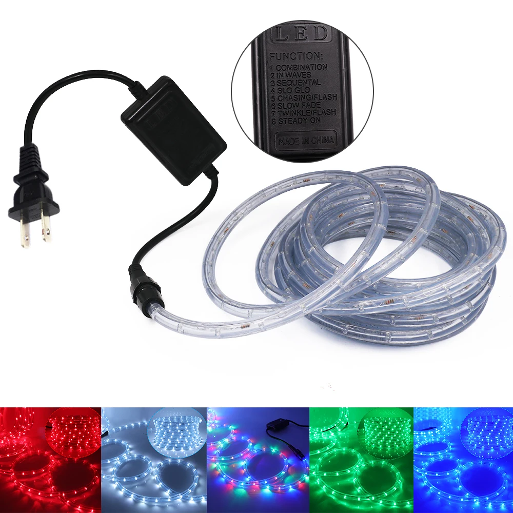 360 круглый светодиодный ленточный светильник Радужный RGB неоновый трубчатый светильник гибкая светодиодная лента веревка 8 режимов Водонепроницаемая полосатая лампа для улицы 220В 110В